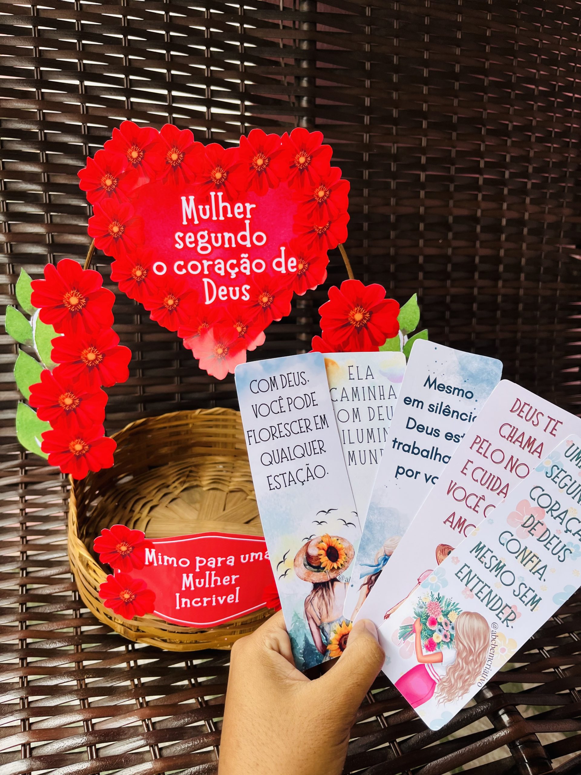 Neste Dia da Mulher, presenteie com algo que toca o coração 💖 A Cesta “Mulher segundo o coração de Deus” foi criada para lembrar cada mulher do seu valor, da sua fé e do cuidado constante do Senhor. 🌸 Mensagens cristãs de motivação e inspiração